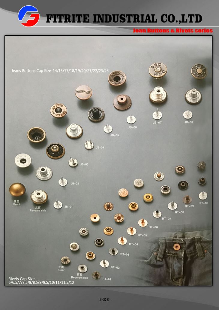 Wholesale High Quality Iron or Brass Jeans Buttons for Clothing/Jeans Packaging & Delivery Packaging Detail: BAG/CTN Delivery Detail: 5-20 days after advanced payment Our Service Fitrite Industrial is committed to providing the best products of Hardware & Plastic to our customers, the...